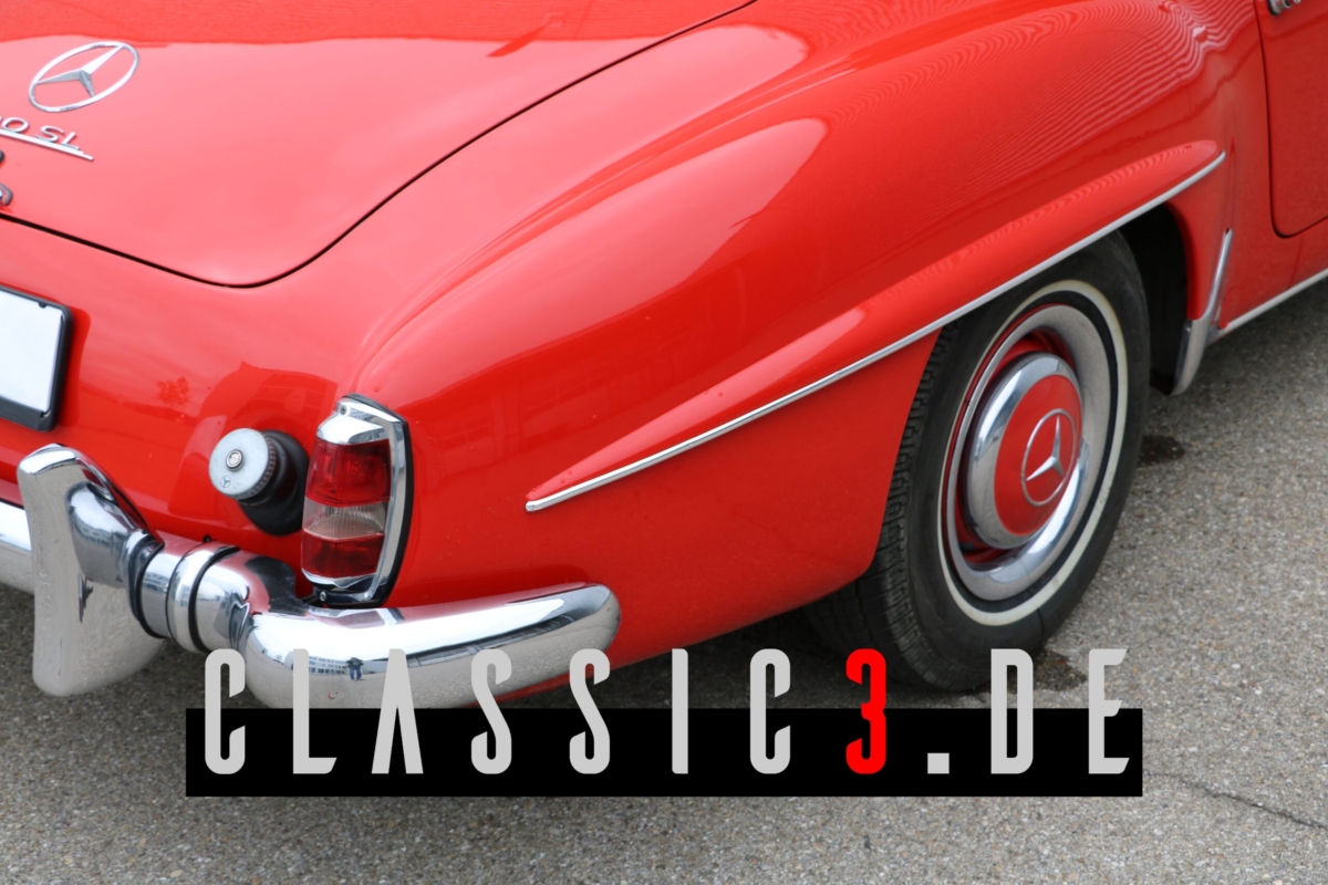 Der jetzige Besitzer, ein schwäbischer Unternehmer erfüllte sich einen lange gehegten Lebenstraum und erwarb den SL vor einigen Jahren. Der wiederum steht sozusagen das Jahr über, wenn er ihn nicht fährt, in der Halle seines Oldtimerspezialisten, wo er durchgehend und umfassend, ohne Rücksicht auf die Kosten, gewartet und gepflegt wird. Das Dach ist dicht, das Getriebe schaltet wirklich perfekt, der Motor läuft ruhig und rund und die Bremsen greifen, als wären die Trommeln gegen Scheiben ausgetauscht worden. Aber viel wichtiger als alles andere: Der Mercedes wird regelmässig bewegt, denn Standschäden sind letztendlich teurer zu beseitigen, als einen Klassiker regelmässig zu fahren und umfassend zu warten. Lackierung, Innenausstattung und alle anderen technischen Einrichtungen befinden sich in einem sehr guten Zustand. Erzählen lässt sich viel, deshalb schauen Sie sich den 190er persönlich an, gerne auf der Hebebühne, gerne auch in Begleitung eines Fachmanns.
