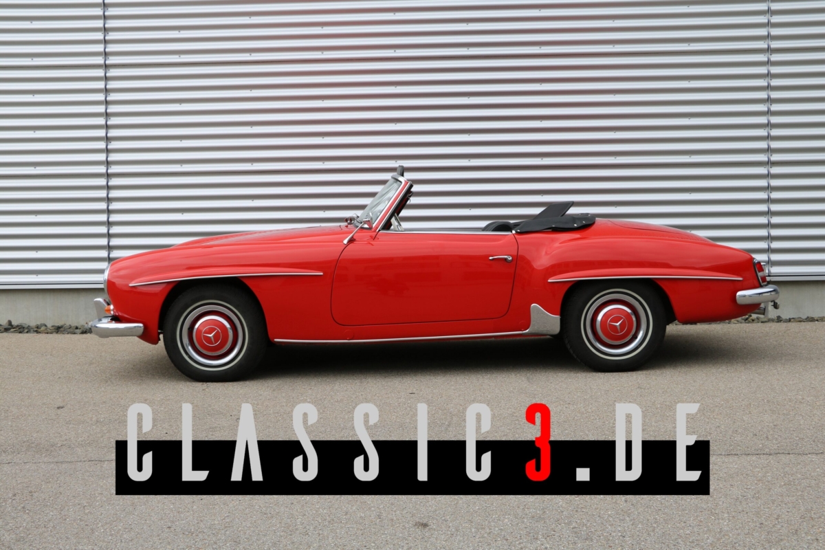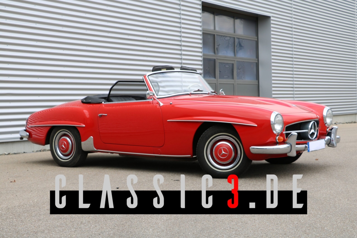 Am 6. Februar 1954 präsentiert Mercedes Benz erstmals einen 190SL Prototypen, auf der „International Motor Sorts Show“ in New York. Nach Beginn der Vorserienproduktion, begann mit der Präsentation der endgültigen Ausführung, anlässlich des Genfer Automobil-Salons 1955, dann im Mai die Serienproduktion. Produziert wurde der unter der Bezeichnung W121 II geführte 190SL, von 1955-1963 in einer Stückzahl von 25.881 Einheiten, wobei allein 10.368 von diesen in die USA exportiert wurden. Technisch basierend auf der 4-türigen Limousine der Baureihe W121 (Ponton), versehen mit dem neu entwickelten 4-Zyl.-Motor mit obenliegender Nockenwelle und einer Leistung von 77kW/105PS, erreichte das Fahrzeug eine Höchstgeschwindigkeit von rund 170 Km/h. Den 190SL gab es nur ohne Servolenkung, nur als Schalter und nur mit dieser Motorisierung ab Werk. Sollten Sie sich umfassend über den 190SL informieren wollen, so dürfen wir Ihnen die Seite des MERCEDES-BENZ 190 SL-CLUB e.V. (https://190sl-club.mercedes-benz-clubs.com) empfehlen!