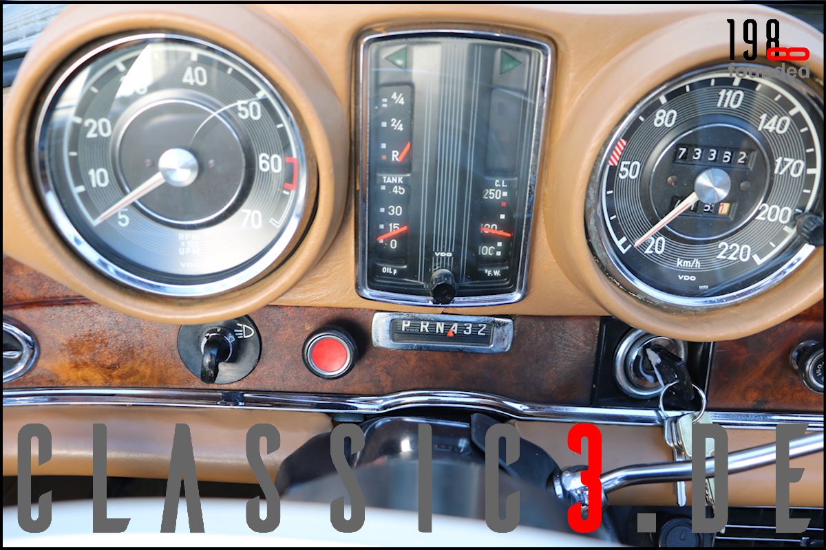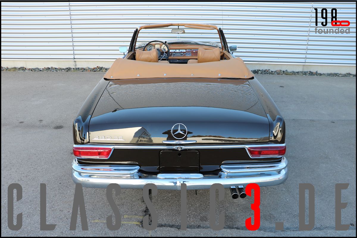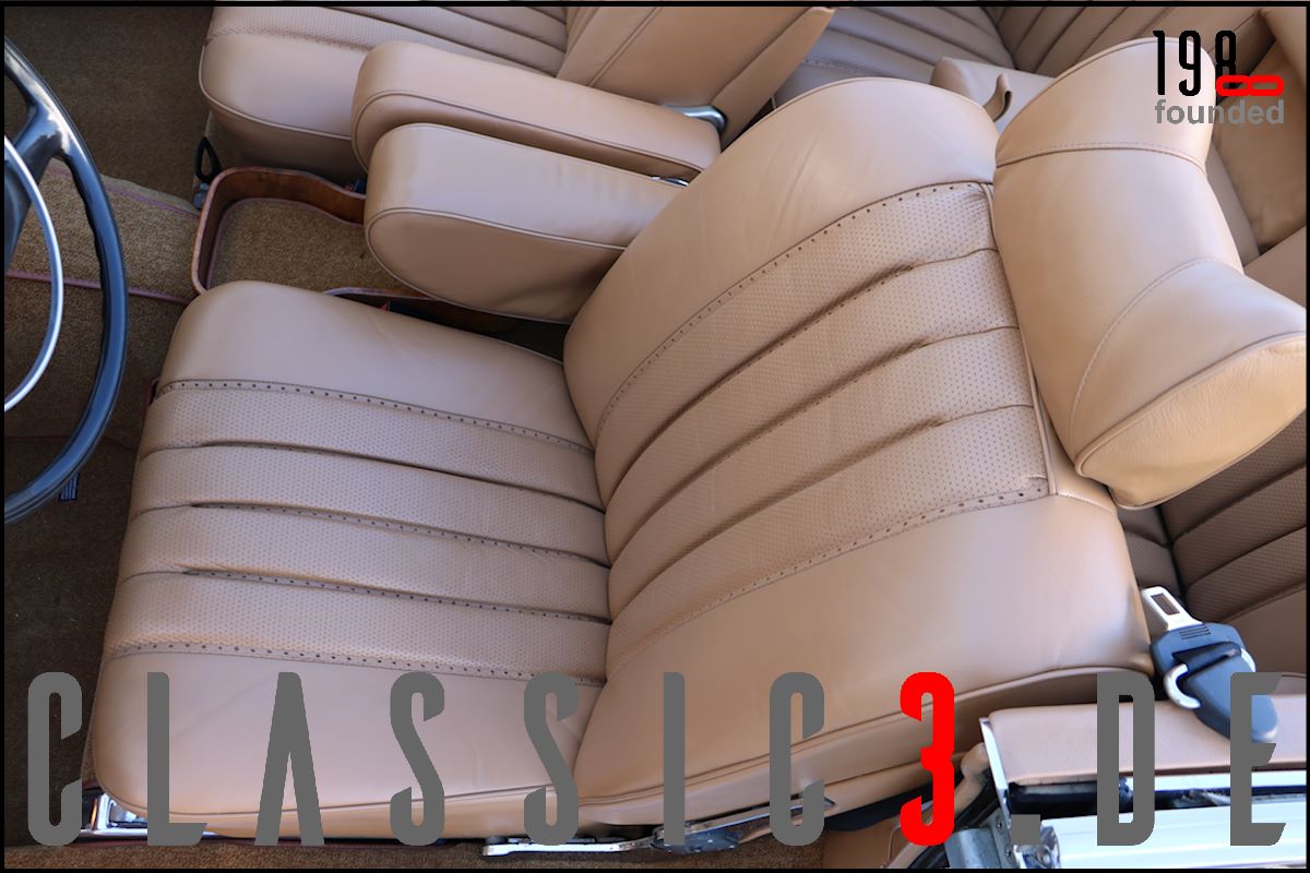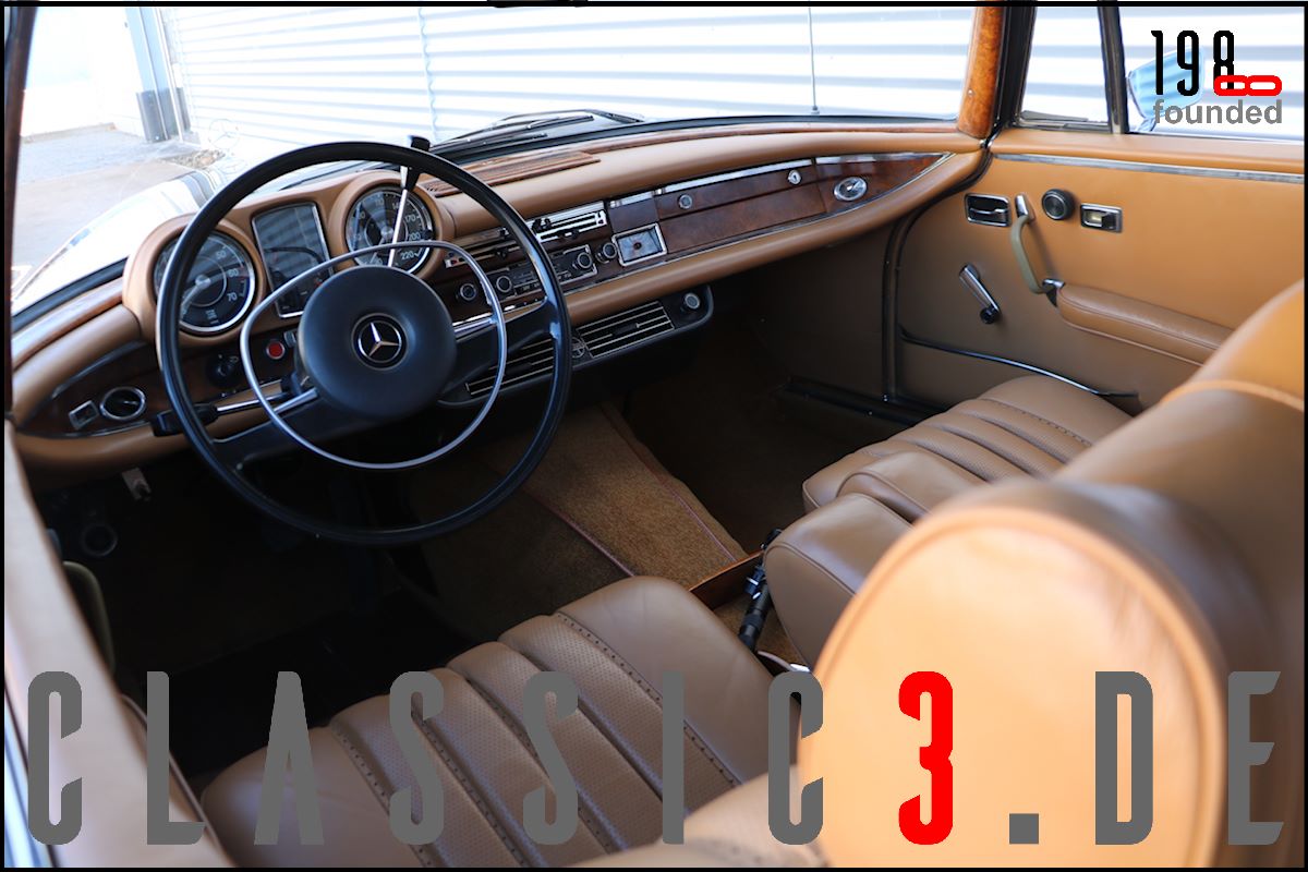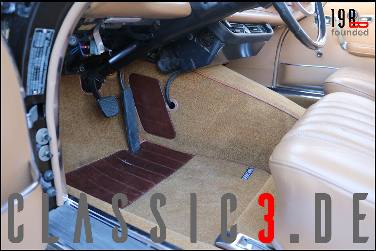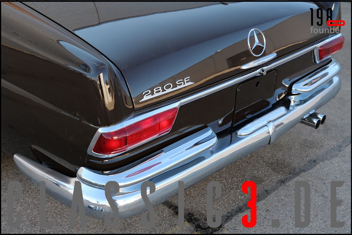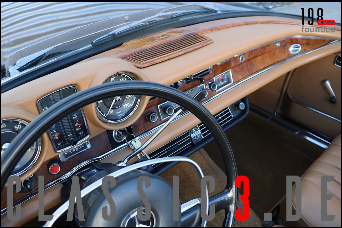 Dieses Mercedes-Benz 280 SE Cabriolet W111 wurde 26.08.1968 bei Mercedes-Benz in Los Angeles mit dem Hinweis bestellt: „Auslieferung in Europa“. Somit nutzte der Besteller die Gunst der Stunde, übernahm sein neues Cabrio in Deutschland und genoss damit eine ausgiebige Europatour, bevor sein Mercedes im Laderaum eines Schiffes und er per Flugzeug die Rückreise über den grossen Teich antraten. Bis 2009 wurde der W111 ausschliesslich in und um Los Angeles bewegt, bevor er wieder deutschen Asphalt unter die Reifen bekam. In der Folge nahm sich ein renommierter Klassik-Fachbetrieb dieser Schönheit an und lieferte sie anschliessend an seinen neuen Besitzer, einen Chef-Arzt in Bayern aus, der akribisch jeden jährlichen Kundendienst incl. Laufleistung aufzeichnete. Aus Zeitmangel verkaufte er das Cabrio 6 Jahre (2015) und 6.500 Km Laufleistung später weiter. Der jetzige Besitzer liess das Cabrio abrüsten und in einem deutschen Meister-Lackierbetrieb komplett in der selben Farbe neu lackieren. Daneben wurden sämtliche Chromteile neu verchromt, die Innenraumteppiche erneuert und die nach wie vor originale, unbeschädigte und sehr schöne Lederinnenausstattung von einem Fachbetrieb gereinigt, aufgearbeitet und versiegelt. Aber auch an der Technik wurde Hand angelegt: So erhielt das Fahrzeug neue Stossdämpfer, die Bremsanlage wurde erneuert, die Einspritzanlage überholt. Was eine echte Seltenheit darstellt: Neben der originalen Bestellung und Rechnung, liegen auch die beiden Datenkarten im Original vor. Aus diesen ist zu ersehen, dass sich dieses 280 SE Cabriolet wie am Tage der Werksauslieferung präsentiert und sowohl der Originalmotor, als auch das Originalgetriebe immer noch verbaut sind (matching numbers). Ein grosser Kundendienst, TÜV neu und eine umfassende Einweisung vor Fahrzeugübergabe verstehen sich von selbst.