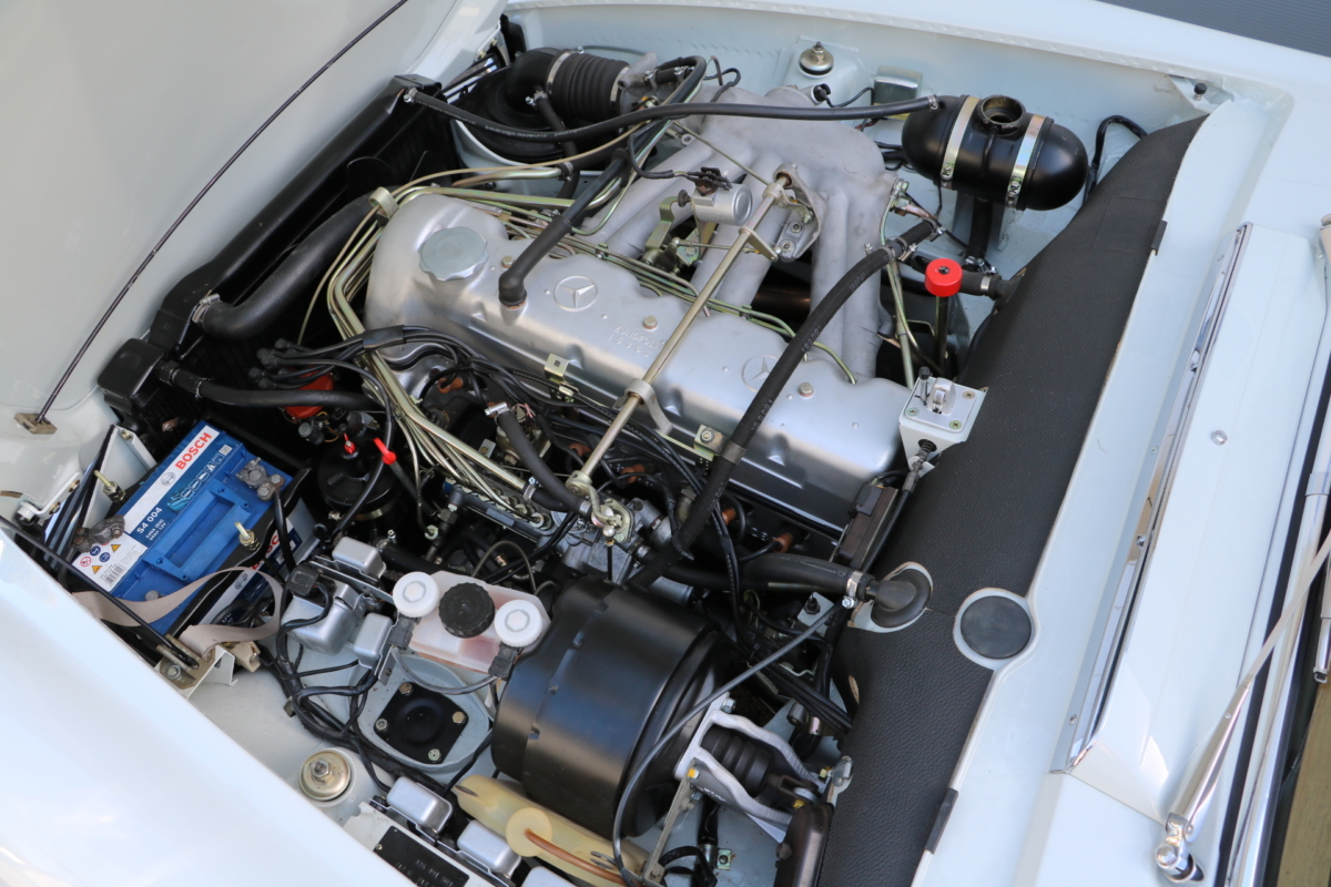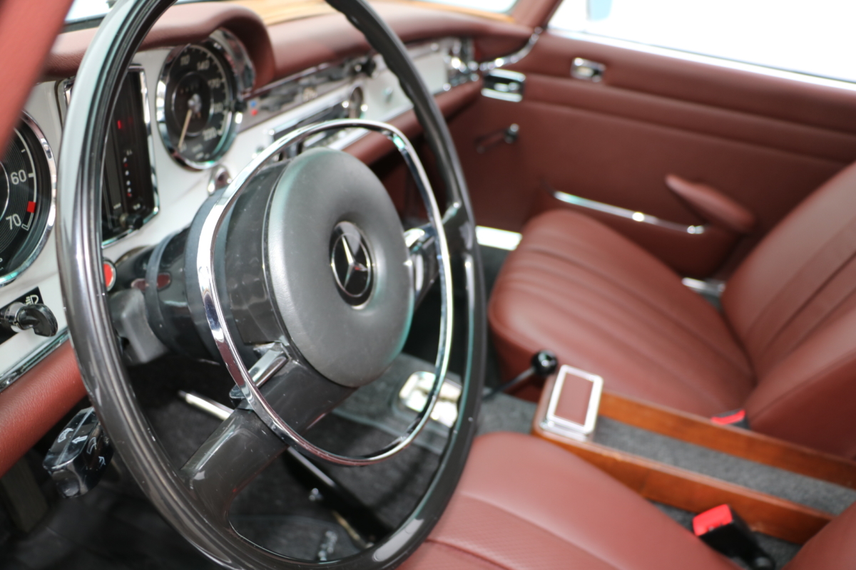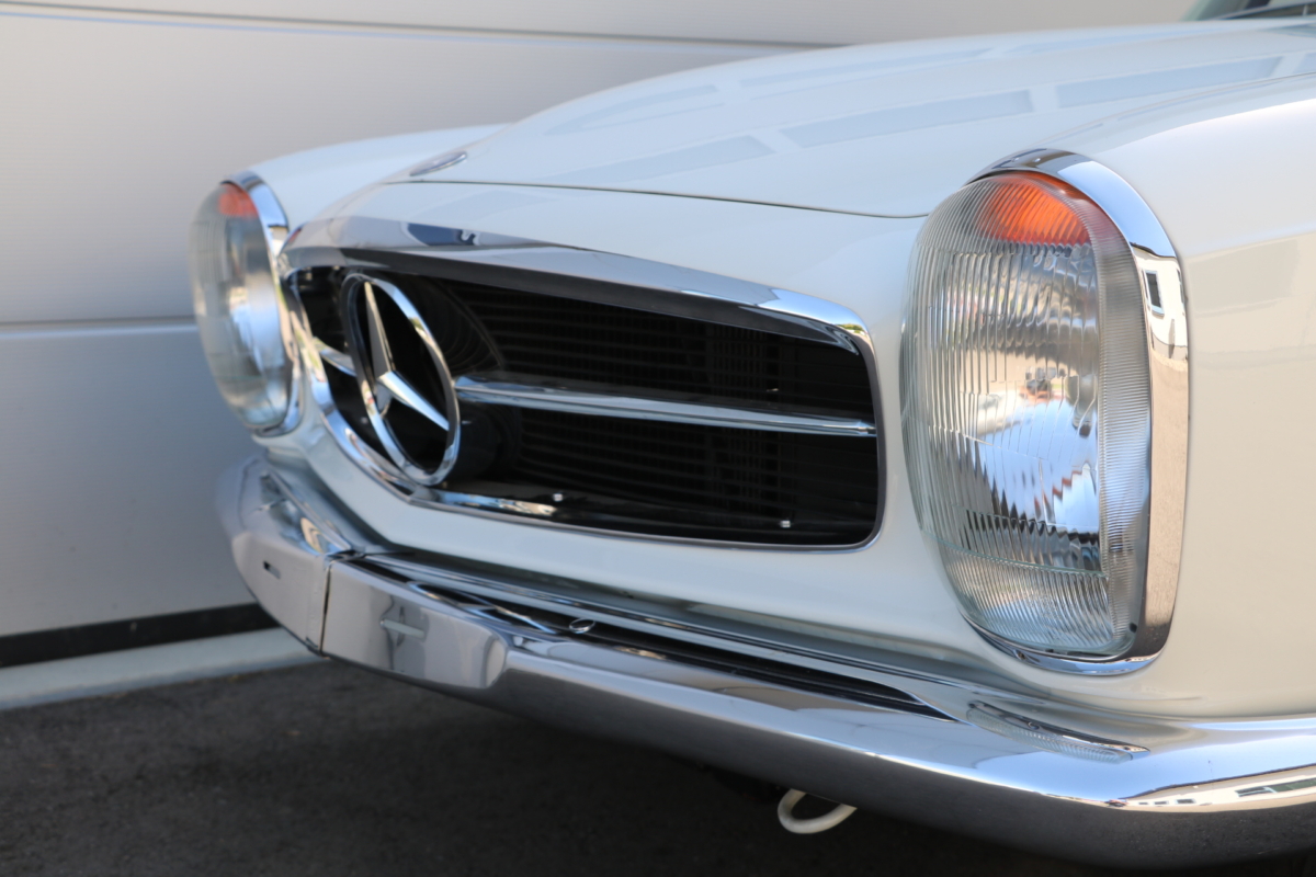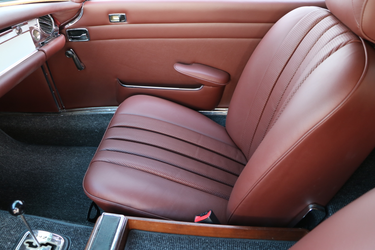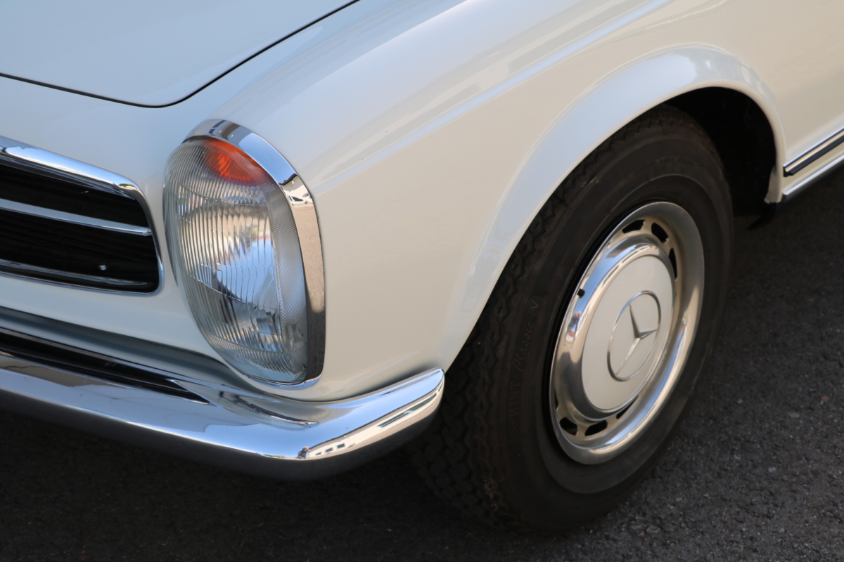 Anlässlich des Genfer Automobilsalons 1963, präsentierte Daimler-Benz den Mercedes-Benz 230 SL mit 150PS / 110kW in 3 Ausführungen: Als offenen Roadster mit sehr leicht bedienbarem Faltverdeck, als die bekannte Cabrio-Version mit Hardtop und zuletzt als Hardtop-Coupe, dem Verdeckkasten und Verdeck fehlten, dafür wurde zusätzlicher Stauraum für Gepäck geschaffen. Auch diese Variante konnte bei Abnahme des Hardtops offen gefahren werden. Als Sonderausstattung war für die Ablage im Fond ein Quersitz erhältlich. Später folgte noch die s.g. "California- Ausführung" mit Fondsitzbank, ebenfalls ohne Verdeck / Verdeckkasten. Ausser dem Viergang-Schaltgetriebe konnte auch erstmals bei einem SL ein Viergang-Automatikgetriebe geordert werden. Ab Mai 1966 stand zusätzlich ein ZF-Fünfgang- Schaltgetriebe gegen Aufpreis zur Verfügung. Dem konkav gewölbten Hardtop verdankt der SL seinen Spitznamen "Pagode". Im Februar 1967 präsentierte Mercedes-Benz den 250SL. Die Änderungen betrafen im Wesentlichen den Motor und die Bremsanlage. Identische Pferdestärken, aber ein Plus an Hubraum und Drehmoment: + 190 cm³ /+20 Nm, was sich sehr positiv auf den Laufkomfort auswirkte. Nach 5.196 gebauten 250 SL, präsentierte Mercedes-Benz 1968 den 280 SL: 170Ps / 125kW, 240 Nm. 23.885 Pagoden mit dem 2,8 Liter Motor wurden gebaut und eine davon, präsentiert sich hier, aufwändig, fachkundig und detailgetreu restauriert und mit CLASSIC DATA GUTACHTEN, Note 1!