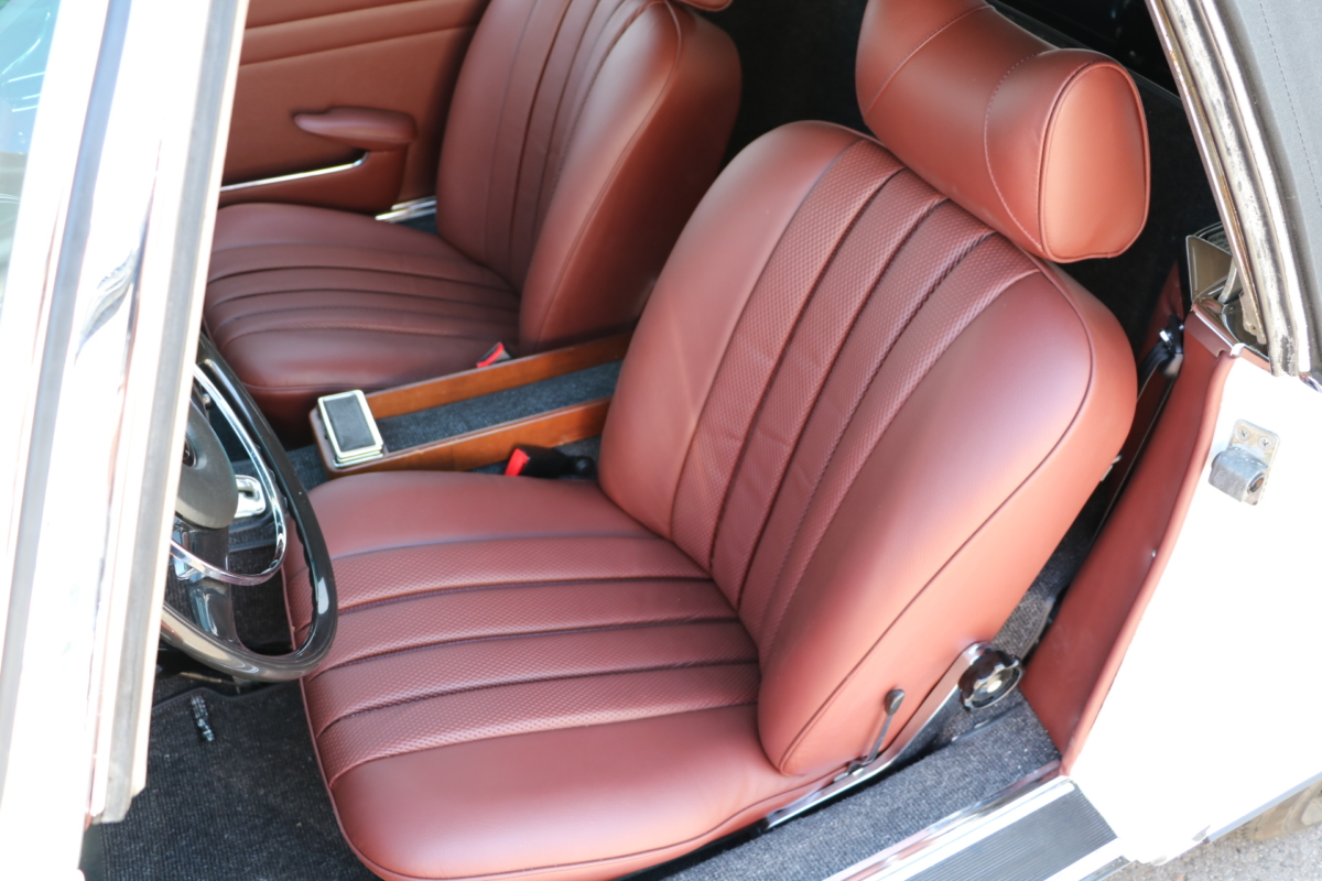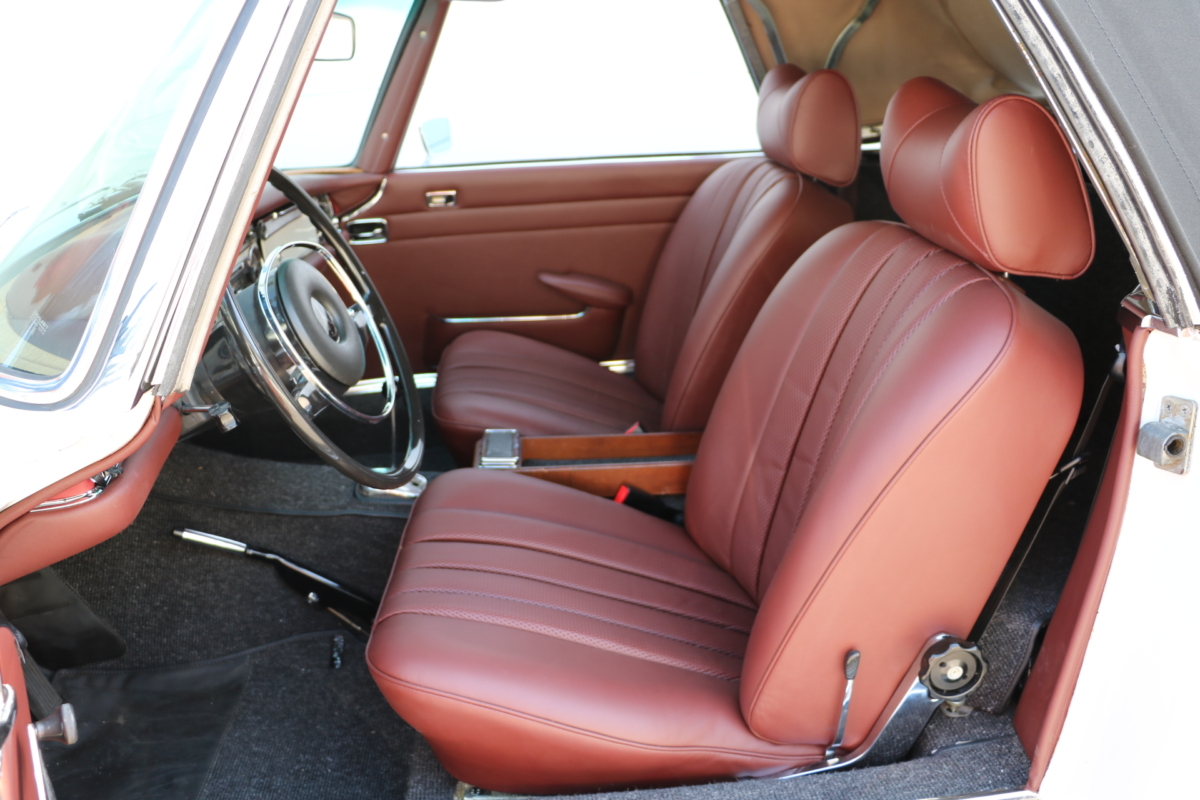 Rostfreie Pagode aus 1. Hand! Die Pagode war unfall- und beschädigungsfrei und wurde vollumfänglich bei uns von Grund auf restauriert und dabei in der Originalfarbe neu lackiert, wobei sie seit Auslieferung nie umlackiert wurde. Motor, Achsen und Bremsen wurden komplett überholt, eine Edelstahl-Abgasanlage montiert. Das Verdeck und die komplette Innenausstattung wurde erneuert. Die Farbe "Papyrus-Weiß", Farbcode "717" ist ein wunderschönes, strahlendes Weiss, das dem Fahrzeug in Verbindung mit dem kastanienbraunen Interieur, eine aussergewöhnliche Eleganz verleiht. Die Lackierung dieser Mercedes-Benz Pagode 280SL entspricht der Werksauslieferung von 1968, lediglich die Polsterung wurde in der Farbe kastanie gefertigt. Fahrgestell-, Motor-, Getriebenummern, sowie die am Fahrzeug verbauten Nummern der Aluminiumteile stimmen mit der Datenkarte überein (matching). TüV- & H- und Classic Data-Gutachten werden vor Auslieferung bereitgestellt!