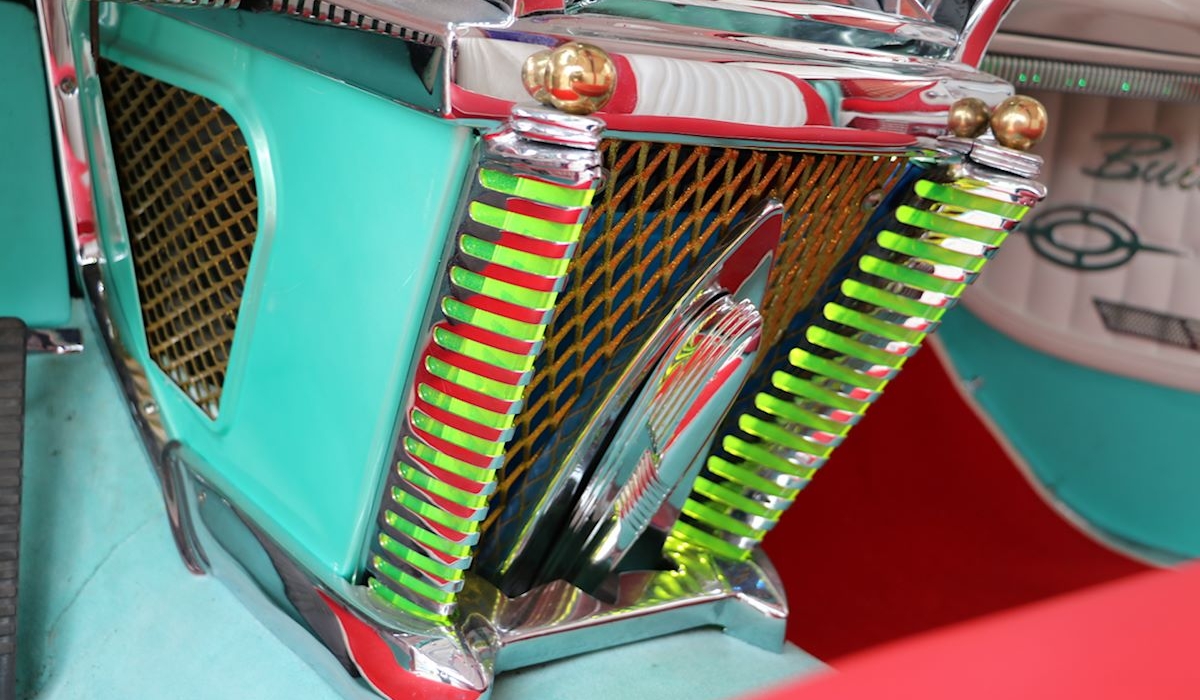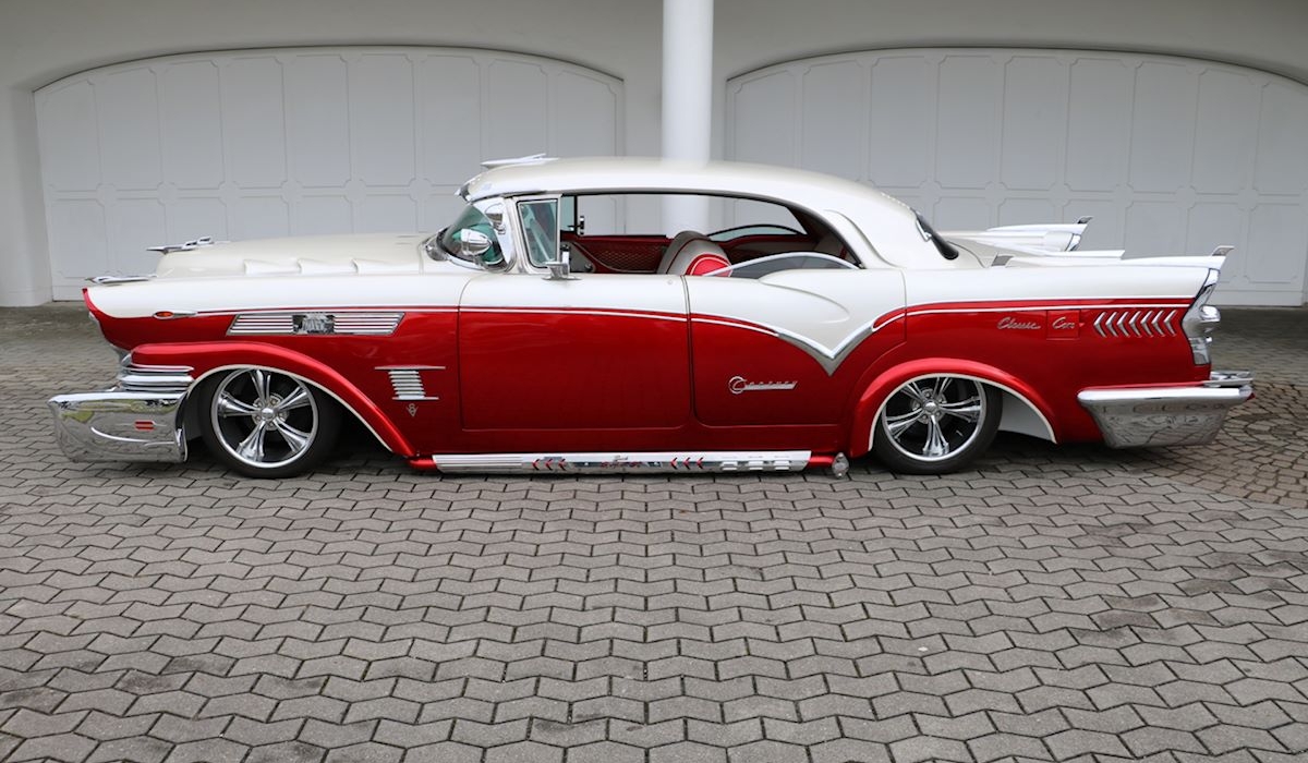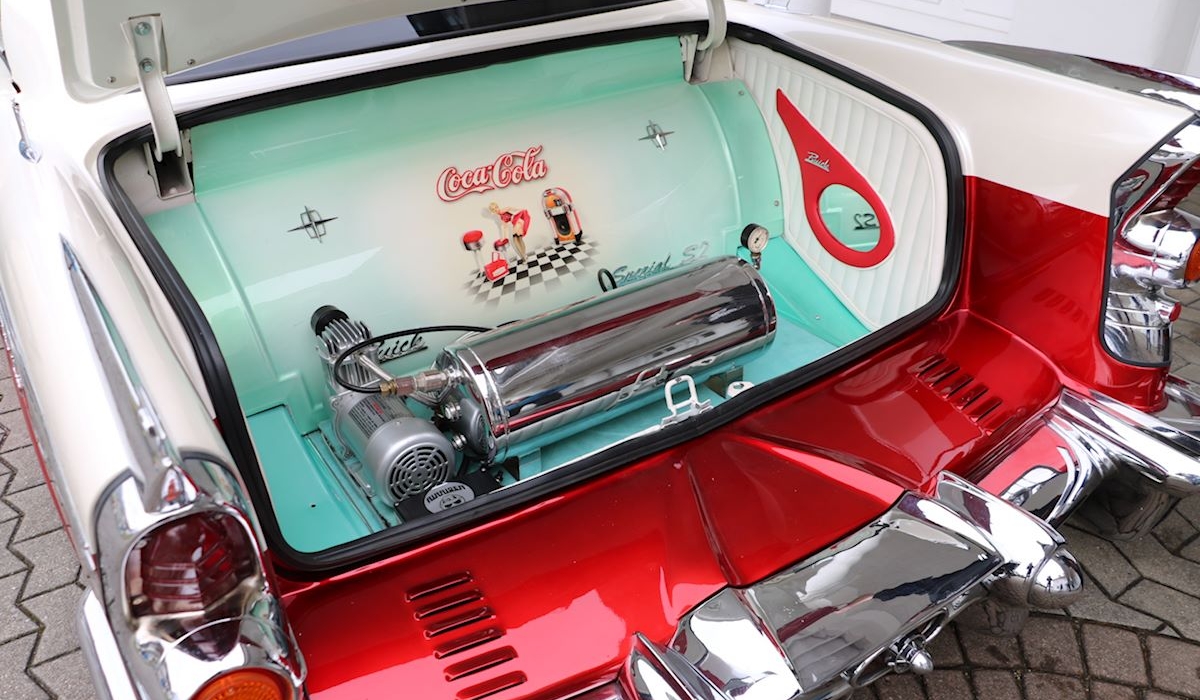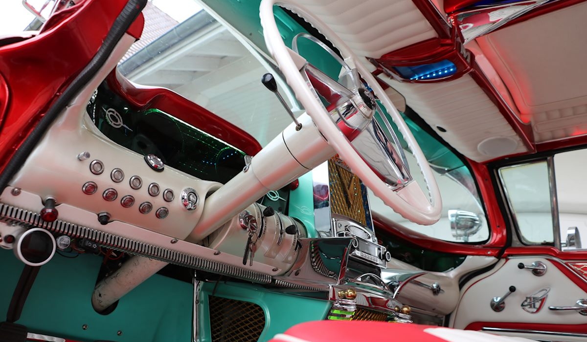 DYNAFLOW-Automatik-Getriebe "MR. AIRRIDE" Fahrwerk" leistungsstarkes Sound System BOSS Motorsports Chrome Wheels Weisswand-Reifen Original V8 Motor Offenhauser Ansaugbrücke 3-fach Vergaser zur Jukebox umgebaute Mittelkonsole sehr aufwändige Illumination im gesamten Innenraum phantastische Airbrush-Motive seit Fertigstellung keine 100Km bewegt