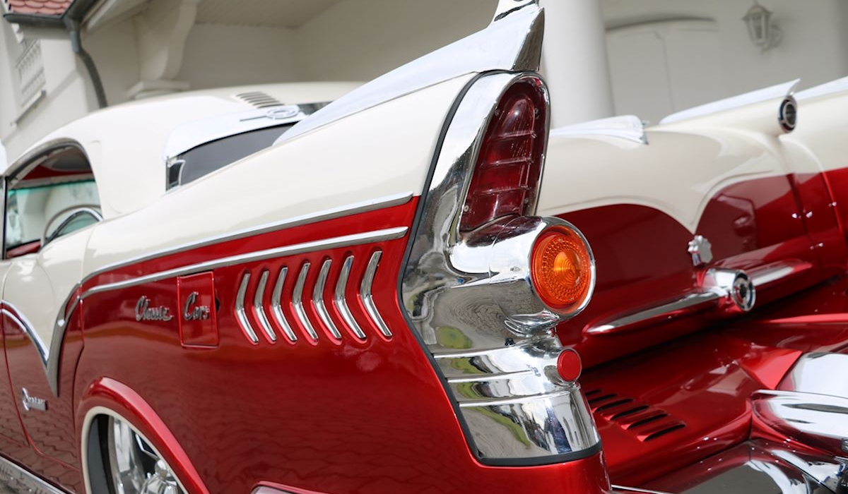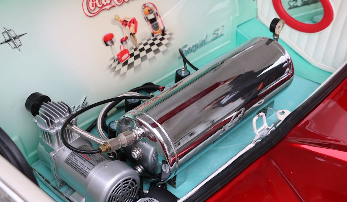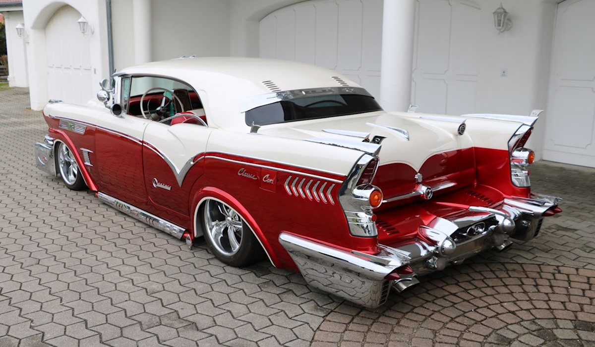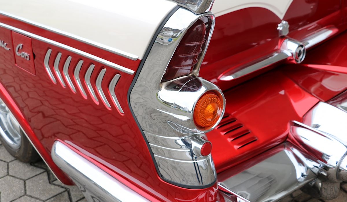 DYNAFLOW-Automatik-Getriebe "MR. AIRRIDE" Fahrwerk" leistungsstarkes Sound System BOSS Motorsports Chrome Wheels Weisswand-Reifen Original V8 Motor Offenhauser Ansaugbrücke 3-fach Vergaser zur Jukebox umgebaute Mittelkonsole sehr aufwändige Illumination im gesamten Innenraum phantastische Airbrush-Motive seit Fertigstellung keine 100Km bewegt