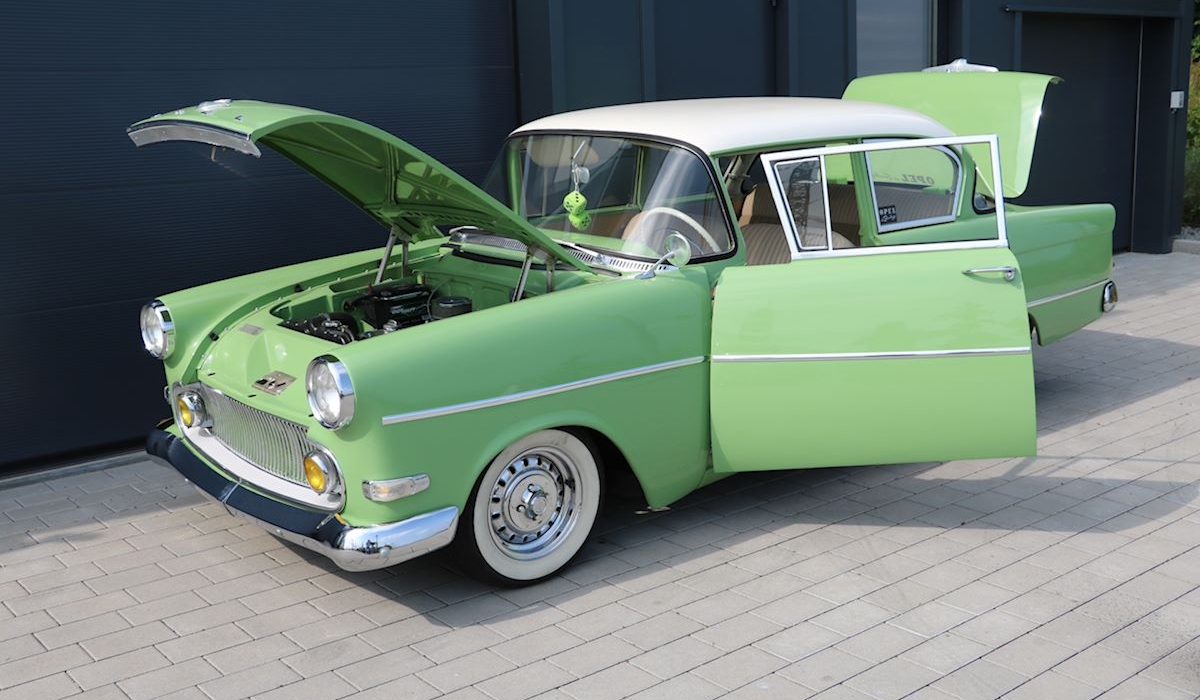 Dieses Auto ist mit einer solchen Hingabe und Detailversessenheit restauriert worden, dass es einem die Sprache verschlägt. Wo dieser OLYMPIA auftaucht, zieht er die Blicke auf sich, wie ein Magnet, völlig egal ob eine italienische, "sindelfinger´sche", bajuwarische oder andere automobile Schönheit neben ihm parkt! Als „Olympia Rekord“ wurde dieses Modell am 13. August 1957 vom Vorstandsvorsitzenden der Adam Opel AG, Edward W. Zdunek, in der Stadthalle Wiesbaden, der Öffentlichkeit vorgestellt. Er orientierte sich an der oberen Mittelklasse und sein auffälligstes Merkmal waren die grossen Panoramascheiben vorne und hinten, nach dem Vorbild amerikanischer Strassenkreuzer. Die für damalige Zeit innovative und moderne Karosserieform traf den breiten Geschmack, was sich in den überaus guten Verkaufszahlen wiederspiegelte. Der Rekord war sowohl ein- als auch 2 farbig lieferbar. Eine überarbeitete Vorderachse, sowie das neue, vollsynchronisierte Dreiganggetriebe mit Lenkradschaltung in Verbindung mit dem 1.7 Liter – 40kW/54Ps-Motor, vermittelten ein ganz neues Fahrgefühl. Gleichzeitig zur 2 türigen Coupé-Version, wurde auch der 2-türige Kombi (diese Version wurde auch als „CarAVan“ – „It is a Car and a Van“ bezeichnet) und zusätzlich ein Schnell-Lieferwagen ohne hintere Verglasung angeboten. Nach den Werksferien 1959 folgte dann der Opel Rekord als viertürige Limousine Das hier angebotene Opel Olympia Rekord 1700 Coupé befindet sich in einem vollumfänglich restaurierten und optisch traumhaftem Zustand, incl. TüV-, H- und CLASSIC-ANALYTICS-Gutachten!