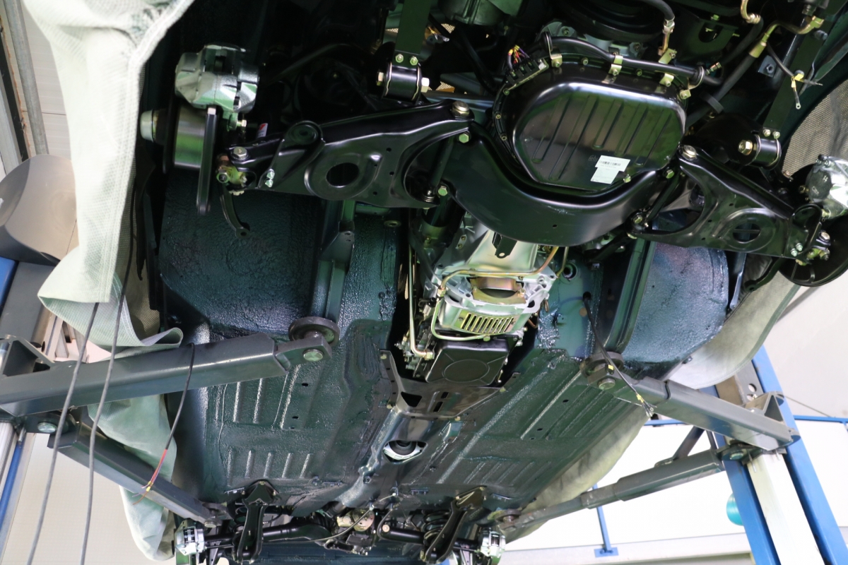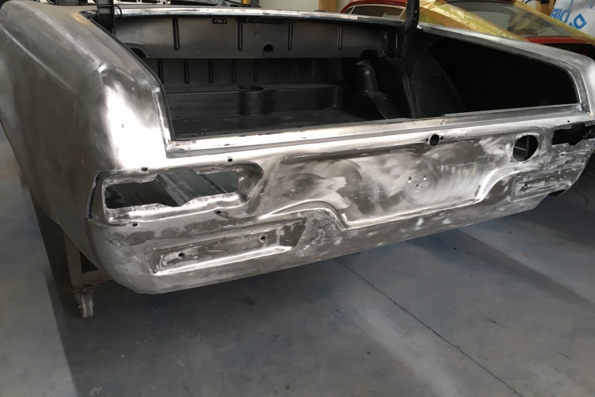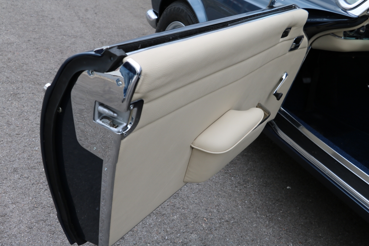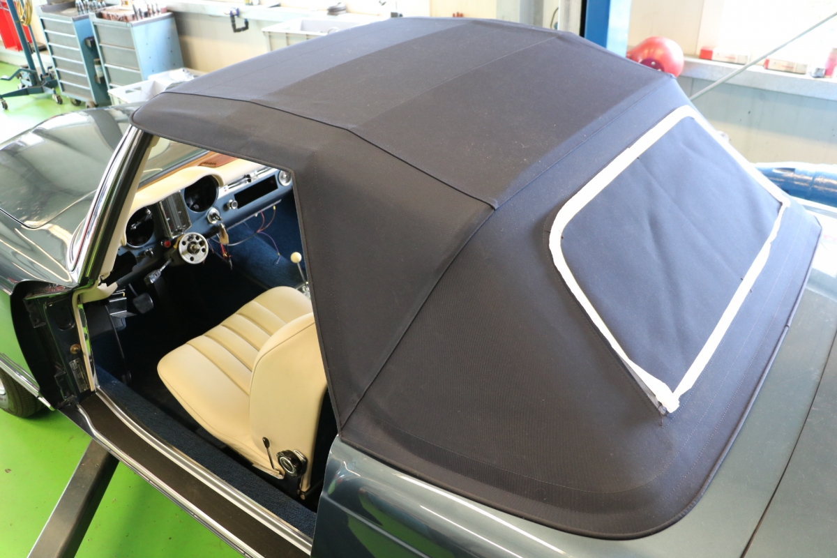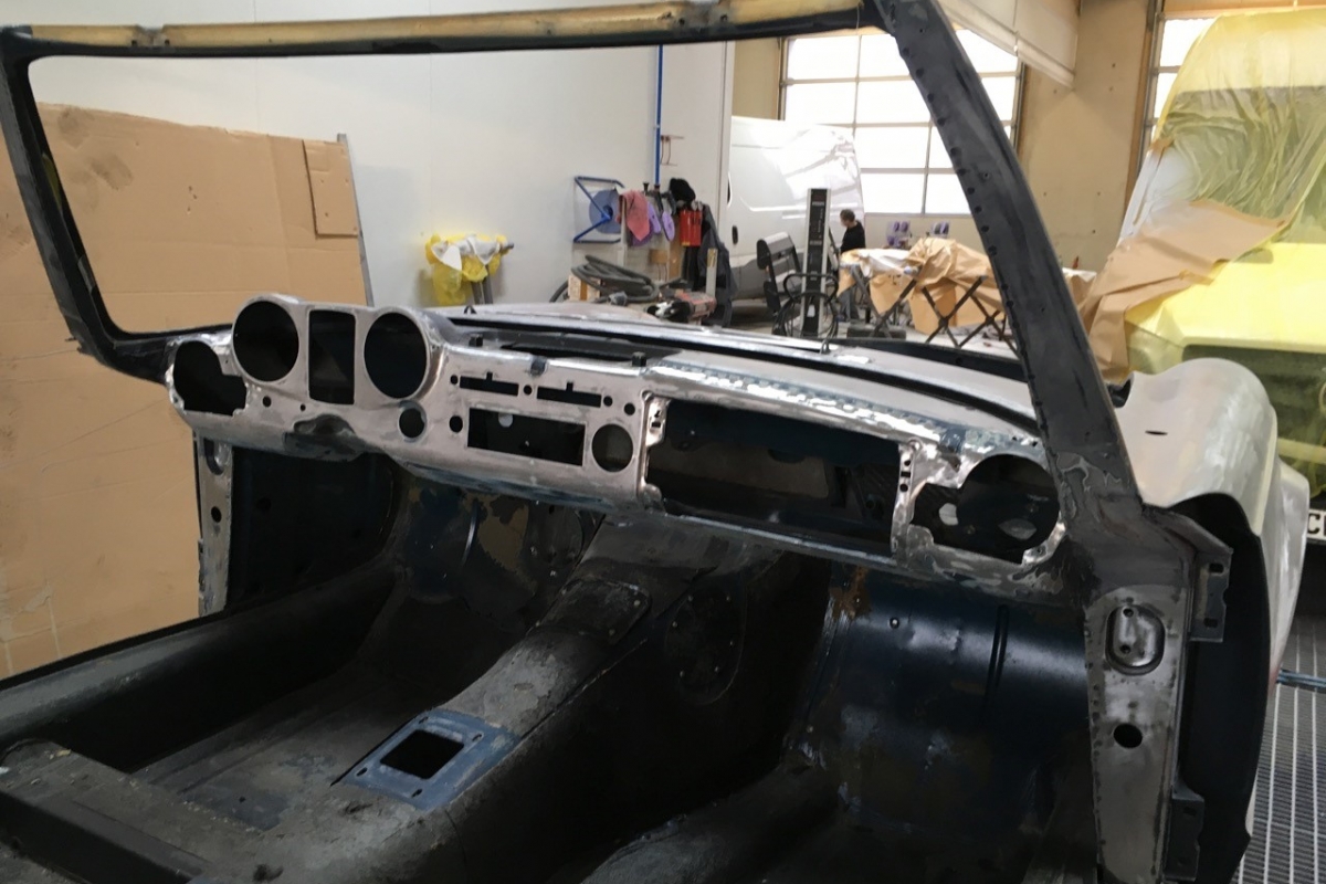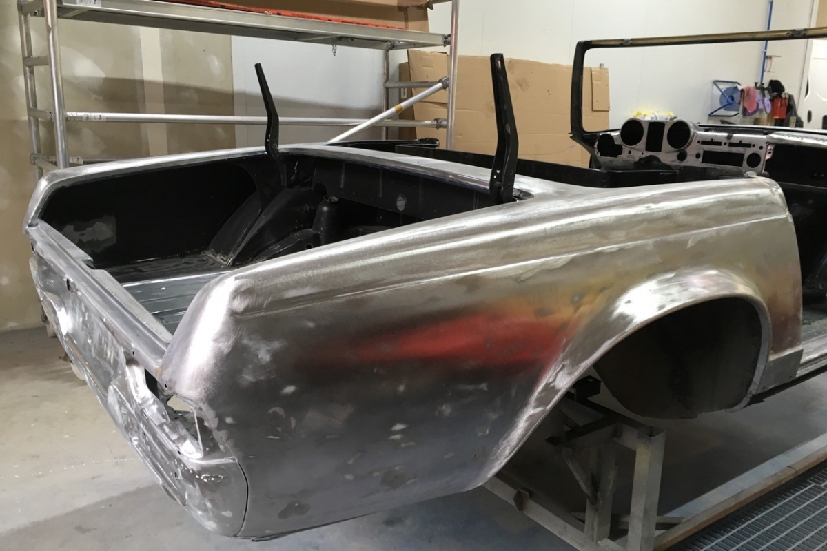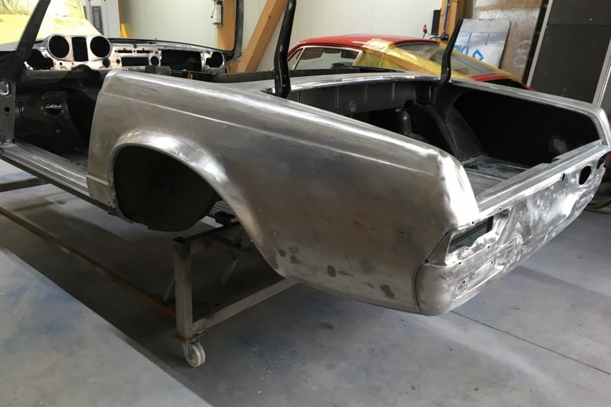 Wir haben schon viele Pagoden wiederbelebt, jede war auf ihre Weise besonders, aber bei dieser wird das s.g.i-Tüpferl mitgeliefert. Zum einen war sie bis dato die teuerste Restaurationsgrundlage in unserer Firmengeschichte da in einem völlig unbeschädigten, unfallfreien, unberührten und rostfreien Originalzustand. Lediglich die Innenausstattung wurde irgendwann die letzten 48 Jahre ausgewechselt. Aber die Original-Farbkombination in der diese Pagode 1969 ausgeliefert wurde, dürfte von einer Dame gewählt worden sein: Sehr mondän und exclusiv: Dunkelblau, wie schon auf den Photos erkennbar, mit Leder PERGAMENT. Schliessen Sie die Augen und stellen sich die fertiggestellte Pagode am Hafen von Monaco vor, im Hintergrund die weissen Yachten.... Bis dahin war es ein langer Weg, während dessen wir die Fertigstellung laufend photographisch dokumentiert haben. Ausschliesslich alle Neuteile wurden über Mercedes-Classic geordert. Fahrgestell-, Motor-, Getriebe- und die am Fahrzeug verbauten Aluminiumteile-Nummern stimmen mit der Datenkarte überein (matching).