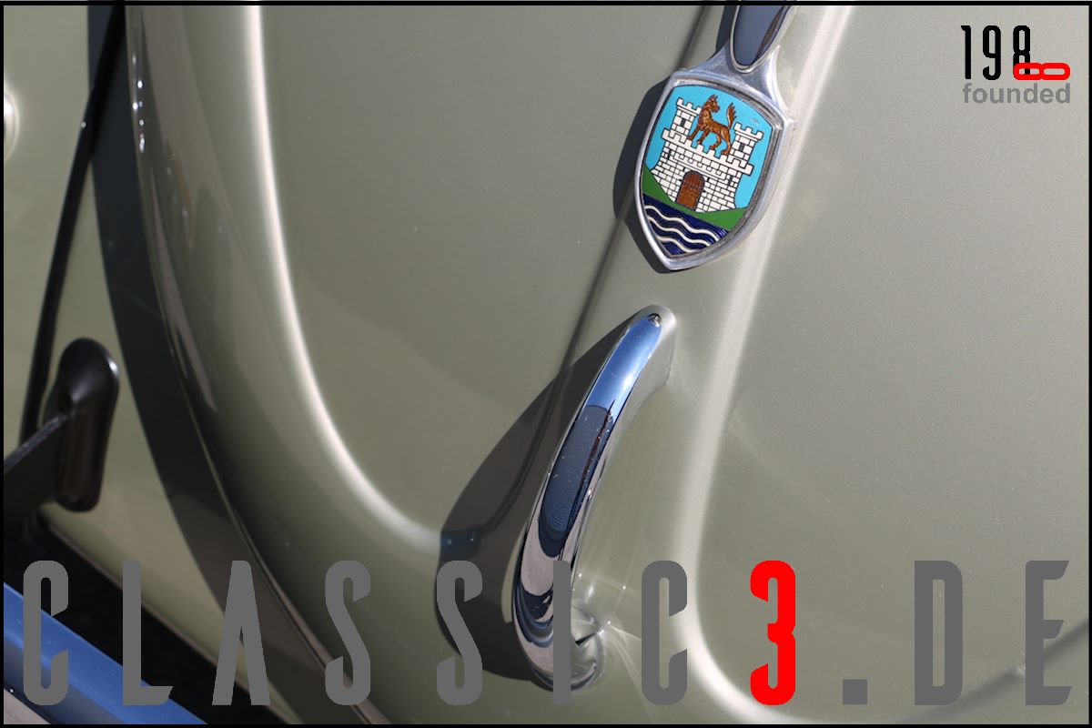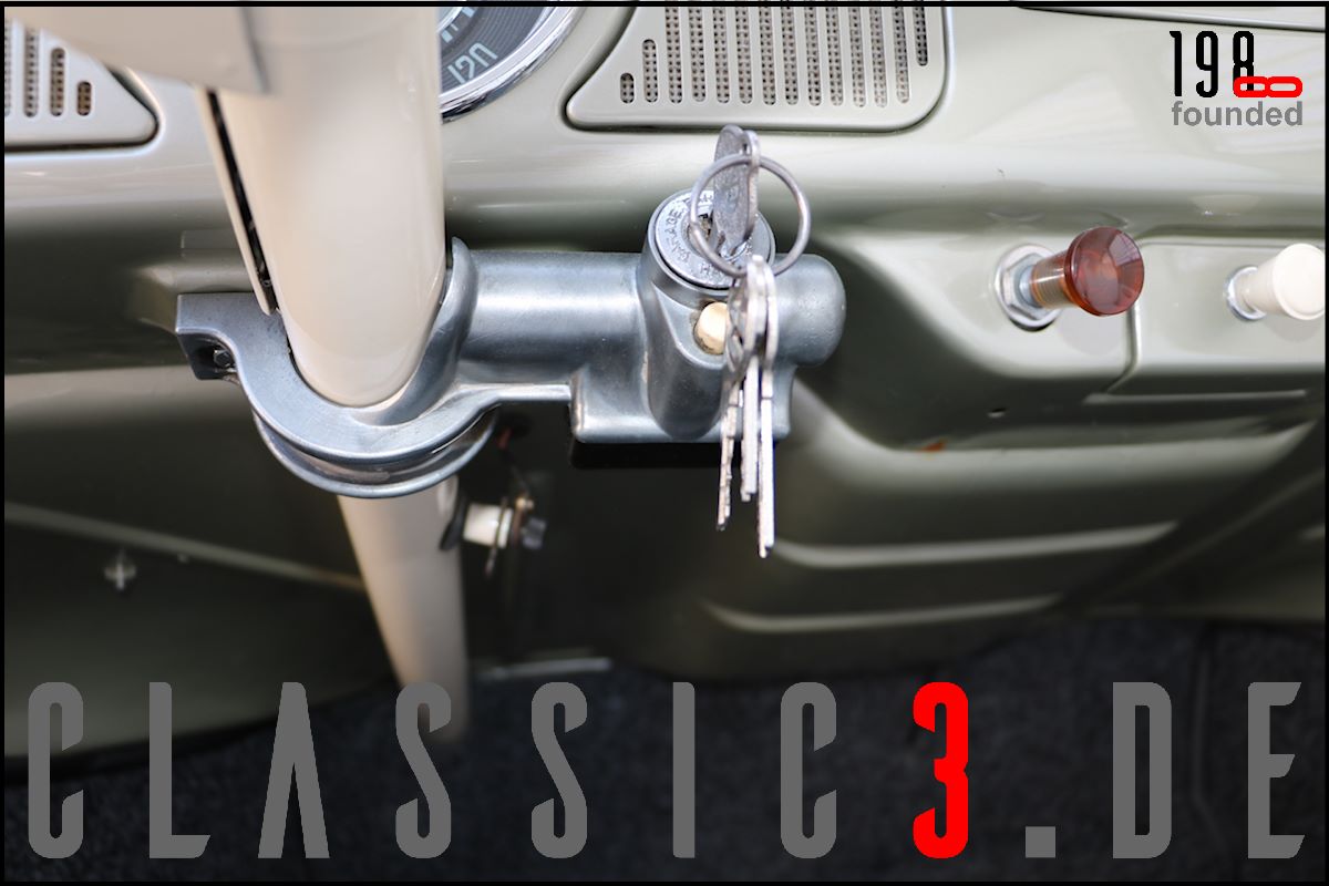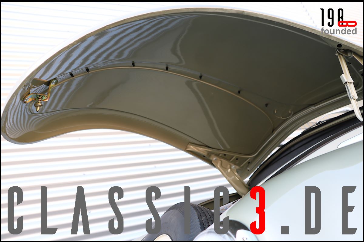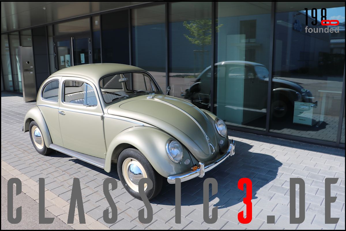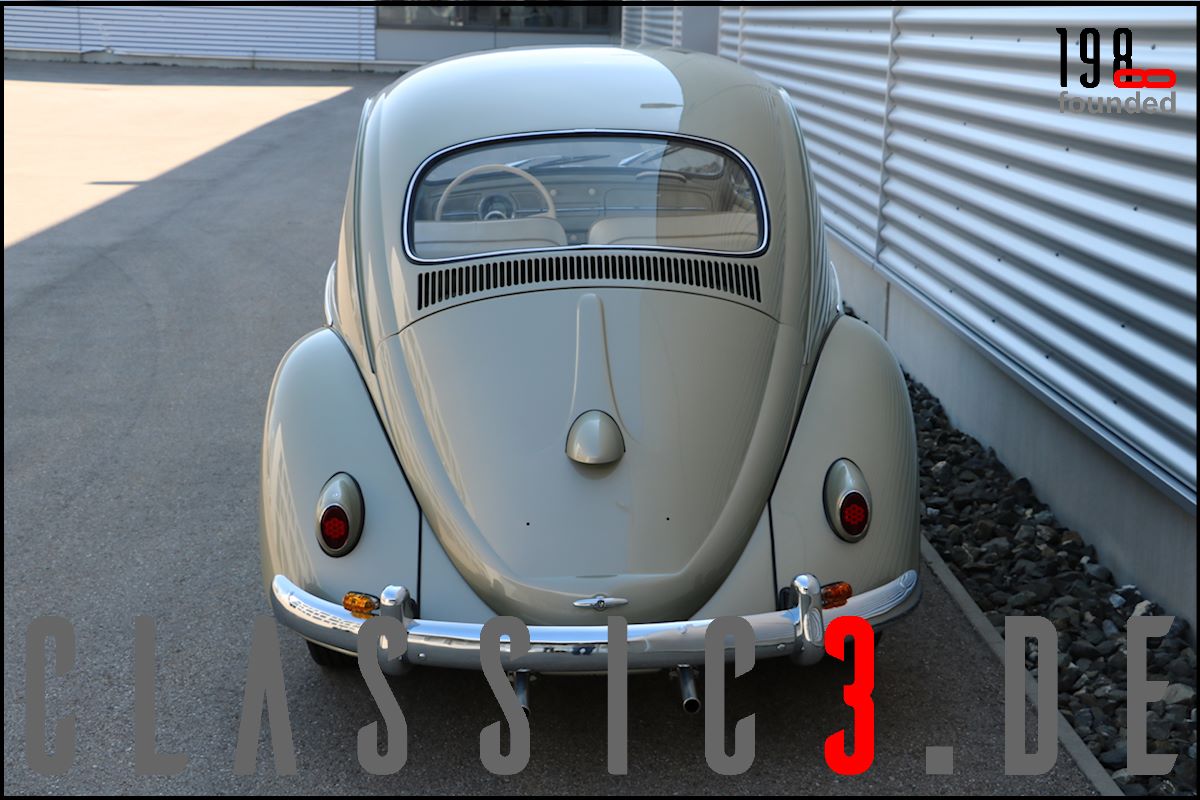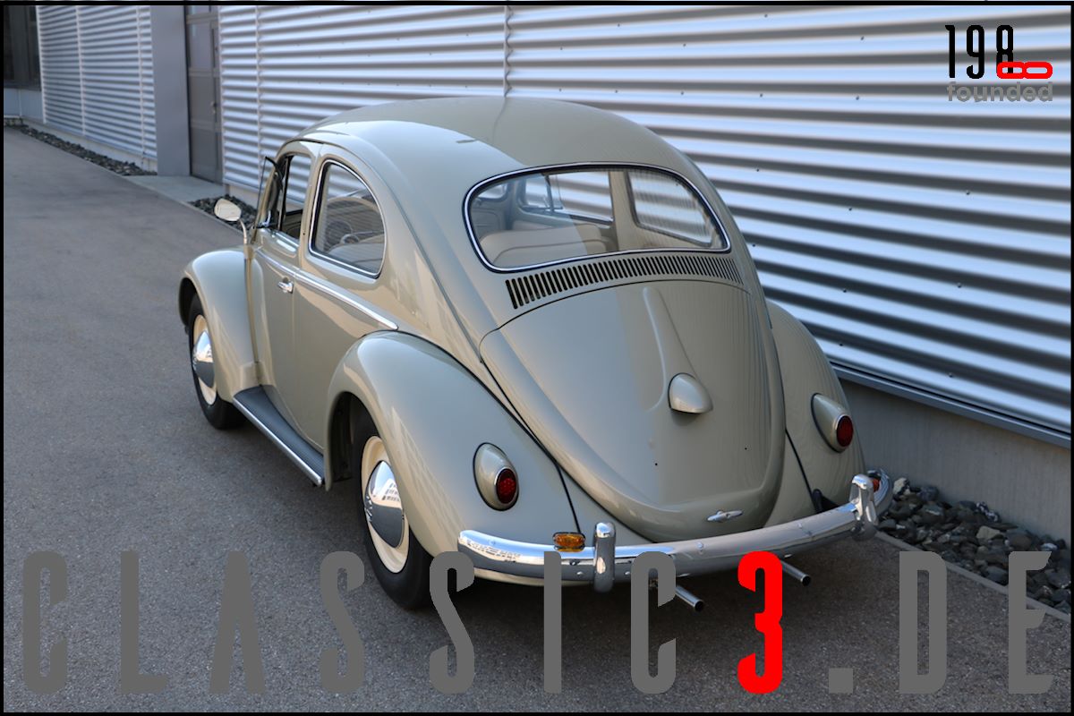 Dieser Käfer wurde am 15. März 1959 als Neuwagen, durch den damaligen Rosenheimer VW-Händler an den Versicherungs-Bezirksleiter Neumann ausgeliefert. Am 24. November 1959 erwarb ihn ein Rosenheimer Buchbindermeister. Am 09. Dezember 1964, wurde der Käfer auf dessen Frau umgeschrieben. Die letzte, dokumentierte Hauptuntersuchung fand im März 1995 statt. Seit 1997 war der Käfer stillgelegt, bis vor ca. 3 Jahren mit der Restauration begonnen wurde. Der jetzige Besitzer liess den Käfer für sich selbst restaurieren und nicht, um ihn anschliessend zu verkaufen. Er scheute weder Kosten, noch Mühen um sich seinen Traum zu erfüllen. Inzwischen dürften die Restaurationskosten bei annähernd EUR 40.000 liegen, wobei der Lebenszeitaufwand für Recherche, Besuche von Oldtimermessen etc. noch nicht eingerechnet ist. Aber im Leben ändern sich oftmals die Prioritäten. Auch in diesem Fall: Der Kauf eines Hauses ist der Grund, warum der Käfer überhaupt angeboten wird, wobei es sich keinesfalls um einen Notverkauf handelt und der Preis auch nicht als Verhandlungsbasis missverstanden werden soll. Die Restauration ist sehr aufwändig und kompromisslos durchgeführt worden. Der hier angebotene Käfer befindet sich in einem vollumfänglich restaurierten und optisch traumhaften Zustand, eine Augenweide! TüV-, H-Gutachten inclusive! Der Verkauf erfolgt im Kundenauftrag. Erwähnenswert: Es handelt sich bei diesem Käfer um eine deutsche Erstauslieferung. Er hat Deutschland nie verlassen, die Fahrzeuggeschichte ist anhand des Papp-Briefes nachvollziehbar. Fahrgestell- und Motornummer stimmen überein, die Geburtsurkunde wurde bei VW-CLASSIC beantragt.